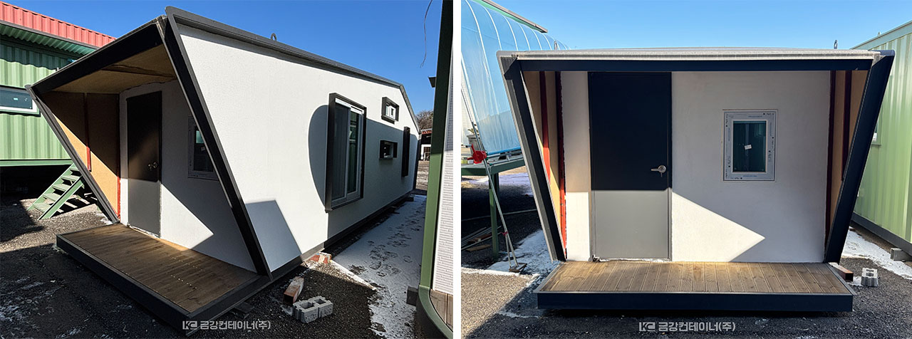 오직 지금만 만나볼 수 있는 체류형쉼터, 농막 특가 이벤트를 준비했습니다! 선착순으로 제공되며 각기 다른 디자인과 품질, 가치를 담았습니다. 놓치면 다시 만나기 어려운 특별한 기회 놓치지 마세요. 자세한 사랑은 1566-0488 문의 주시면 친절하게 안내해드립니다. 이벤트 기간 : 2026.01.01 ~ 2026.02.28 NO.1 사랑채 복층 체류형쉼터(판매완료) 사이즈 : 3.2m x 11m x 3.3m 용도 : 체류형쉼터, 가설건축물 단열 : 경질 우레탄폼 천정 60T/벽체 60T/바닥 30T 외부 : 스타코플렉스 화이트 바닥마감 : 전기온돌판넬/모노륨장판 벽, 천정마감 : 5T합판/9.5T석고보드/MDF몰딩/도배 전기 : SF관/LED등 외 기타/외등/콘센트 등 화장실마감 : 벽체 리빙우드/바닥 타일 화장실 : 노출배관/양변기/세면기/샤위기/거울/온수기50L 주방 : 씽크대 PT상판/PB장/인덕션 1구 계단 및 다락방(계단 발판 시공 전입니다.) 총 금액 3,000만원(VAT별도) - 이벤트가 2,300만원(VAT별도) NO.2 라운드 체류형쉼터 사이즈 : 3m x 11m x 2.9m 용도 : 체류형쉼터, 가설건축물 단열 : 경질 우레탄폼 천정 60T/벽체 60T/바닥 30T 외부 : 노루 에나멜 올리브색/정면 메탈사이딩 화이트 바닥마감 : 전기온돌판넬/모노륨장판 벽, 천정마감 : 5T합판/9.5T석고보드/MDF몰딩/도배 전기 : SF관/LED등 외 기타/외등/콘센트 등 화장실마감 : 벽체 리빙우드/바닥 타일 화장실 : 노출배관/양변기/세면기/샤위기/거울/온수기50L 주방 : 씽크대 PT상판/PB장/인덕션 1구 총 금액 2,500만원(VAT별도) - 이벤트가 1,990만원(VAT별도) NO.3 K7 체류형쉼터 사이즈 : 3m x 10m x 2.6m(데크 3m) 용도 : 체류형쉼터, 가설건축물 단열 : 경질 우레탄폼 천정 60T/벽체 60T/바닥 30T 외부 : 노루 에나멜 회색 바닥마감 : 전기온돌판넬/모노륨장판 벽, 천정마감 : 3T미장합판/오사이 전기 : SF관/LED등 외 기타/외등/콘센트 등 화장실마감 : 벽체 리빙우드/바닥 타일 화장실 : 노출배관/양변기/세면기/샤위기/거울/온수기50L 주방 : 씽크대 PT상판/PB장/인덕션 1구(시공 전입니다.) 이벤트가 1,500만원(VAT별도) NO.4 사랑채 단층 농막(판매완료) 사이즈 : 3m x 6m x 3.3m 용도 : 농막, 가설건축물 단열 : 경질 우레탄폼 천정 60T/벽체 60T/바닥 30T 외부 : 메탈사이딩 징크/메탈사이딩 화이트 바닥마감 : 전기온돌판넬/모노륨장판 벽, 천정마감 : 5T합판/9.5T석고보드/MDF몰딩/도배(도배 전입니다.) 전기 : SF관/LED등 외 기타/외등/콘센트 등 화장실마감 : 벽체 리빙우드/바닥 타일 화장실 : 노출배관/양변기/세면기/샤위기/거울/온수기30L 주방 : 씽크대 PT상판/PB장/인덕션 1구(시공 전입니다.) 총 금액 1,050만원(VAT별도) - 이벤트가 900만원(VAT별도) 모든 상품은 부가세, 운송 설치 장비비, 기초 시공비, 외부 시설 비용이 별도입니다. 궁금한 내용은 편하게 문의주세요.
